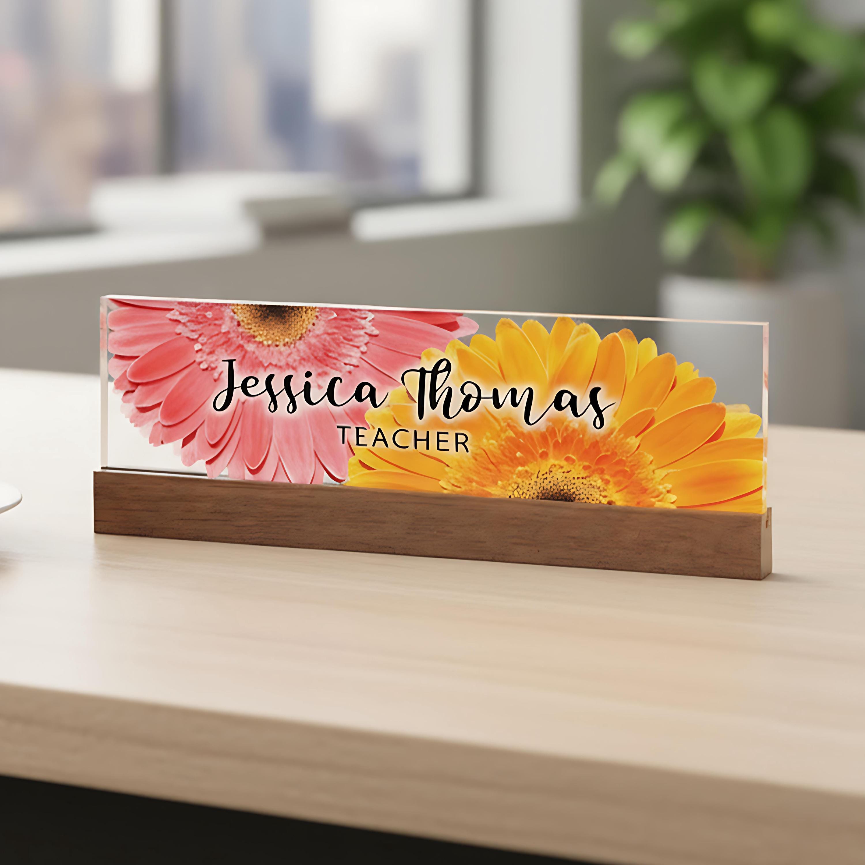 Floral Acrylic Desk Name Plaque: Personalized Office Decor