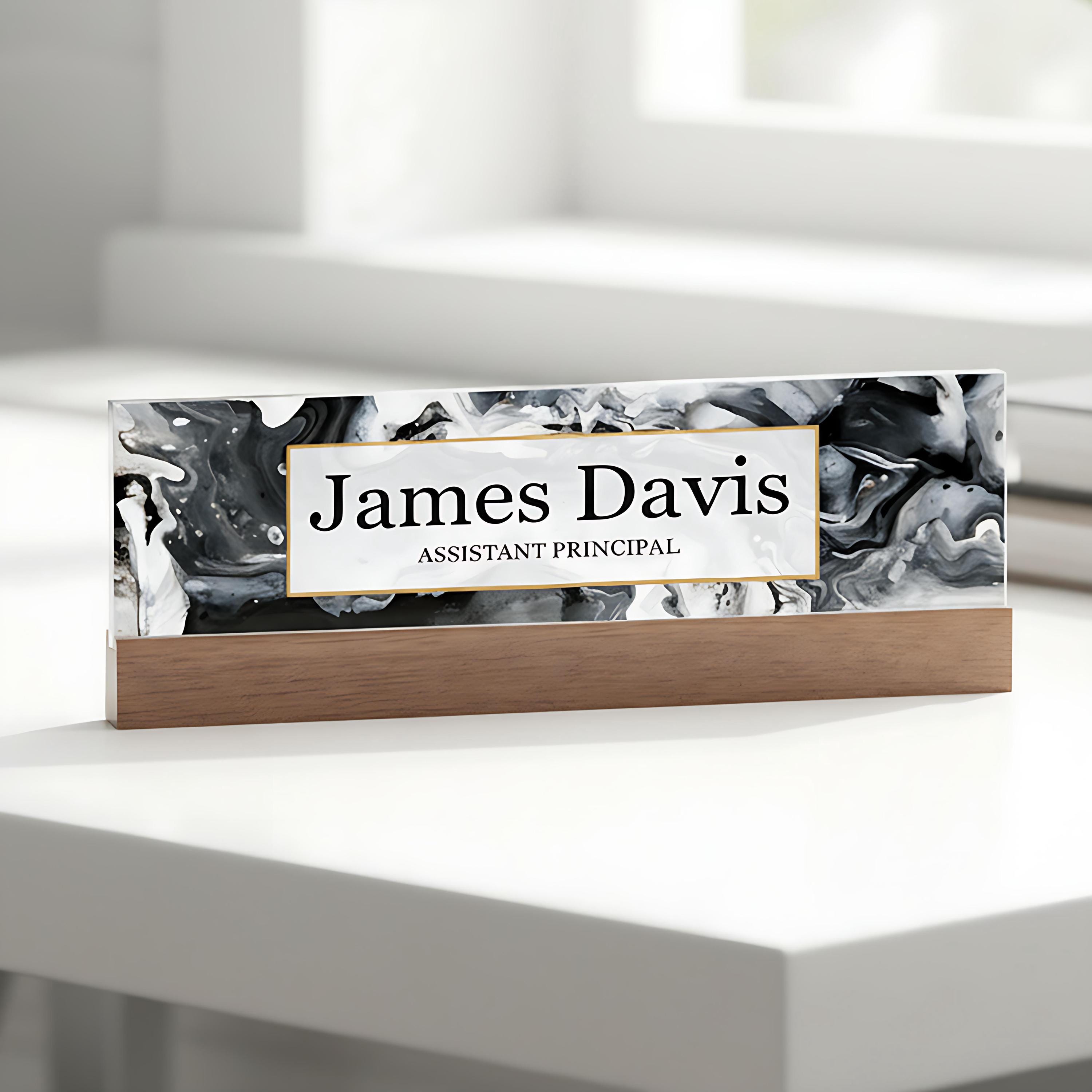 Marble Personalized Acrylic Desk Name Plate - Coworker Gift
