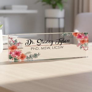 PERSONALIZED DESK NAME PLAQUE: Each acrylic desk name plaque is a unique, personalized piece that adds a professional touch to any workspace. Customers can customize their plaque with their name and title, making it truly their own.