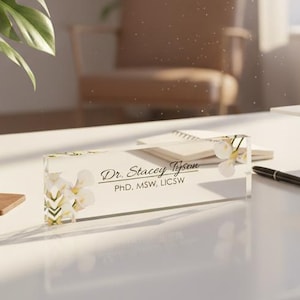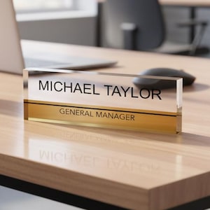 PERSONALIZED DESK NAME PLAQUE: Each acrylic desk name plaque is a unique, personalized piece that adds a professional touch to any workspace. Customers can customize their plaque with their name and title, making it truly their own.