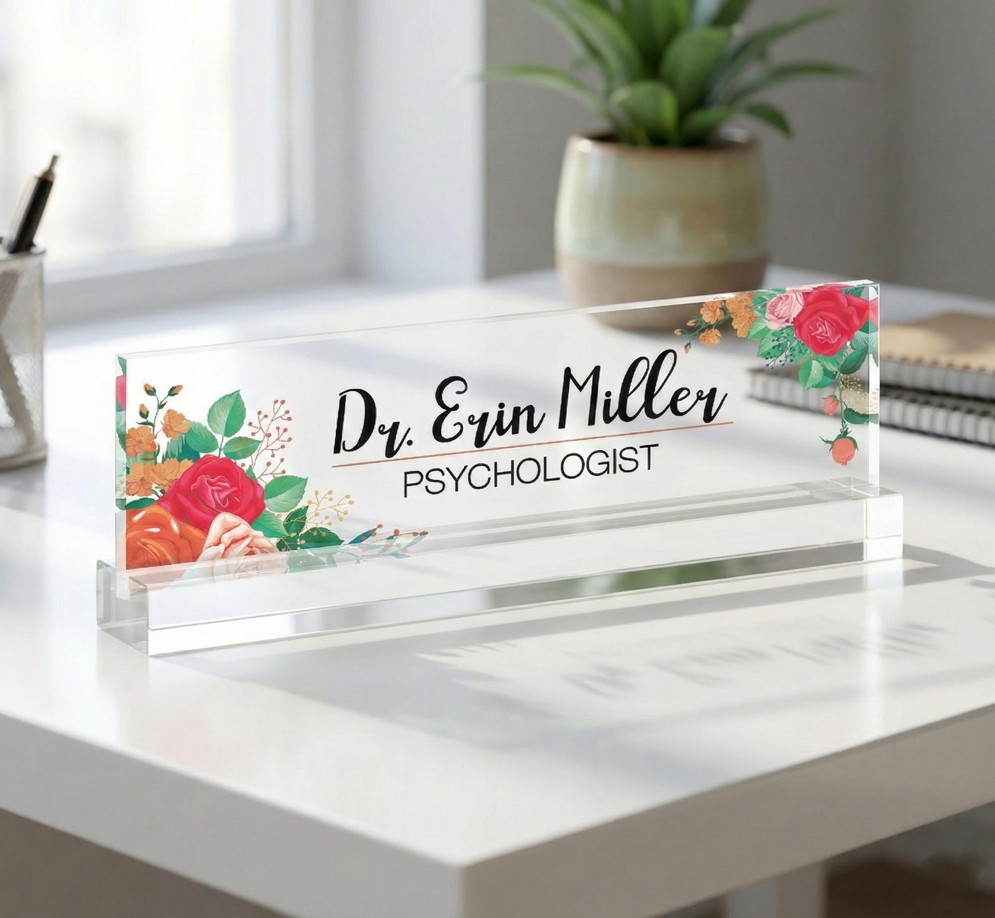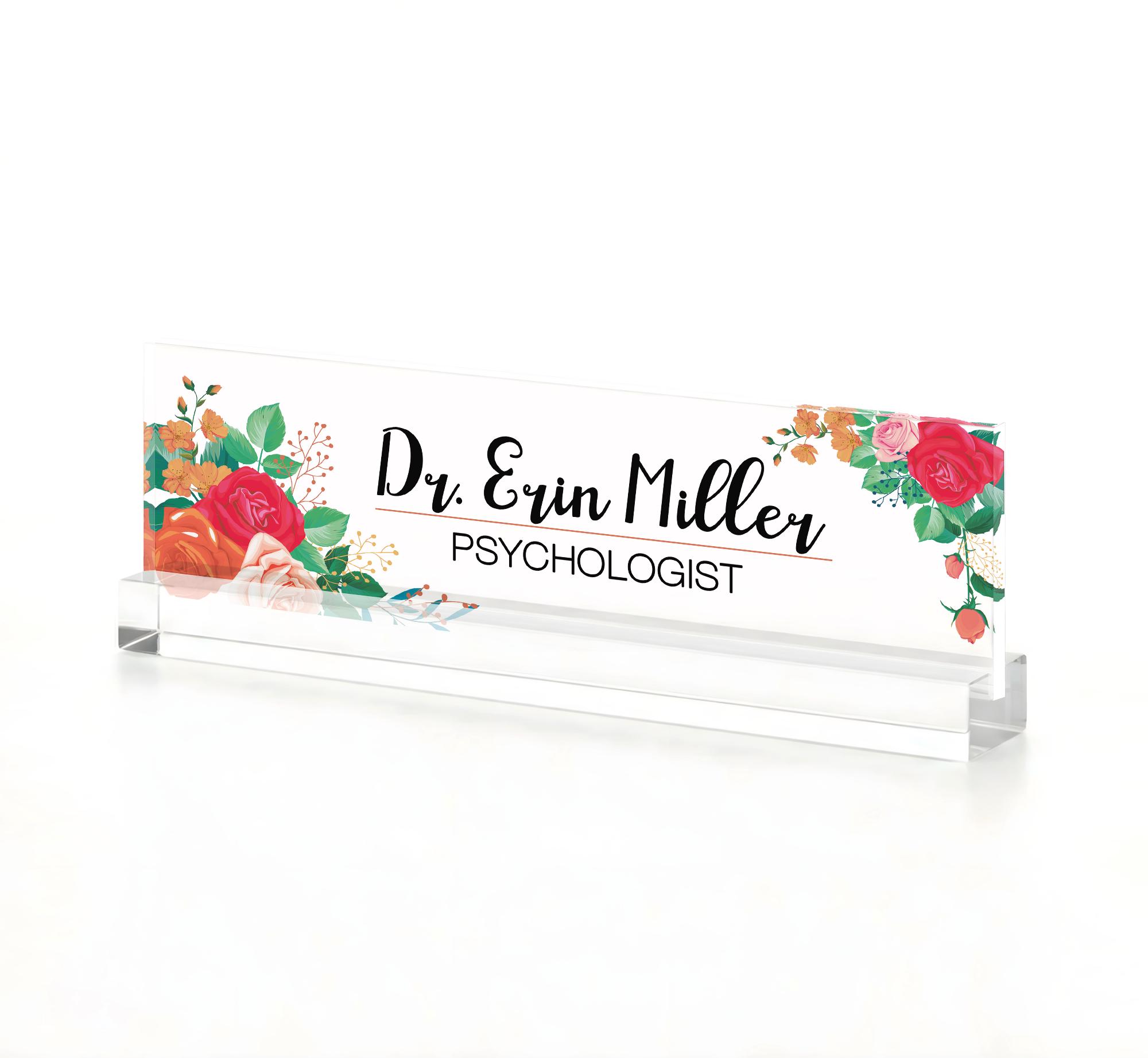 Personalized Acrylic Desk Name Plate: Floral Office Decor for Women Professional Gift for Boss Christmas
