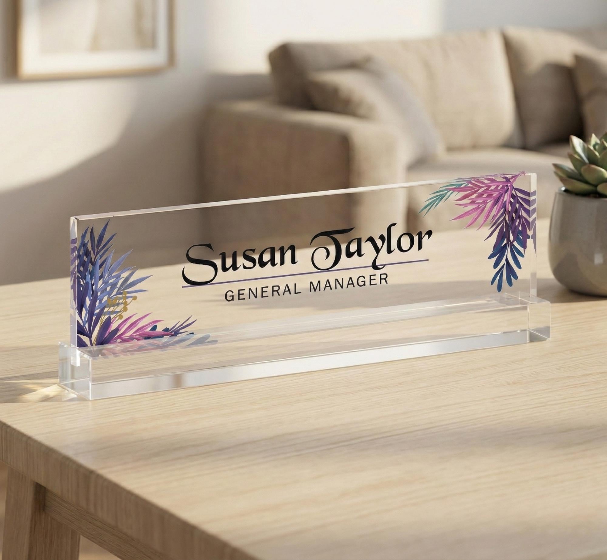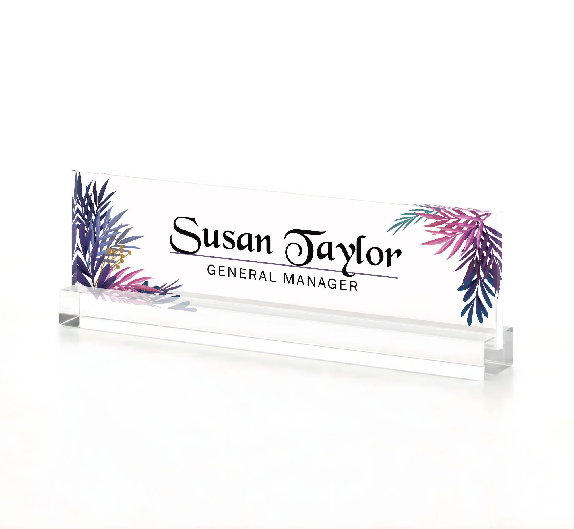 Personalized Acrylic Nameplates for Desks, Custom Acrylic Desk Ornaments, Acrylic Nameplates for Desks, Transparent Acrylic Floral Patterns.