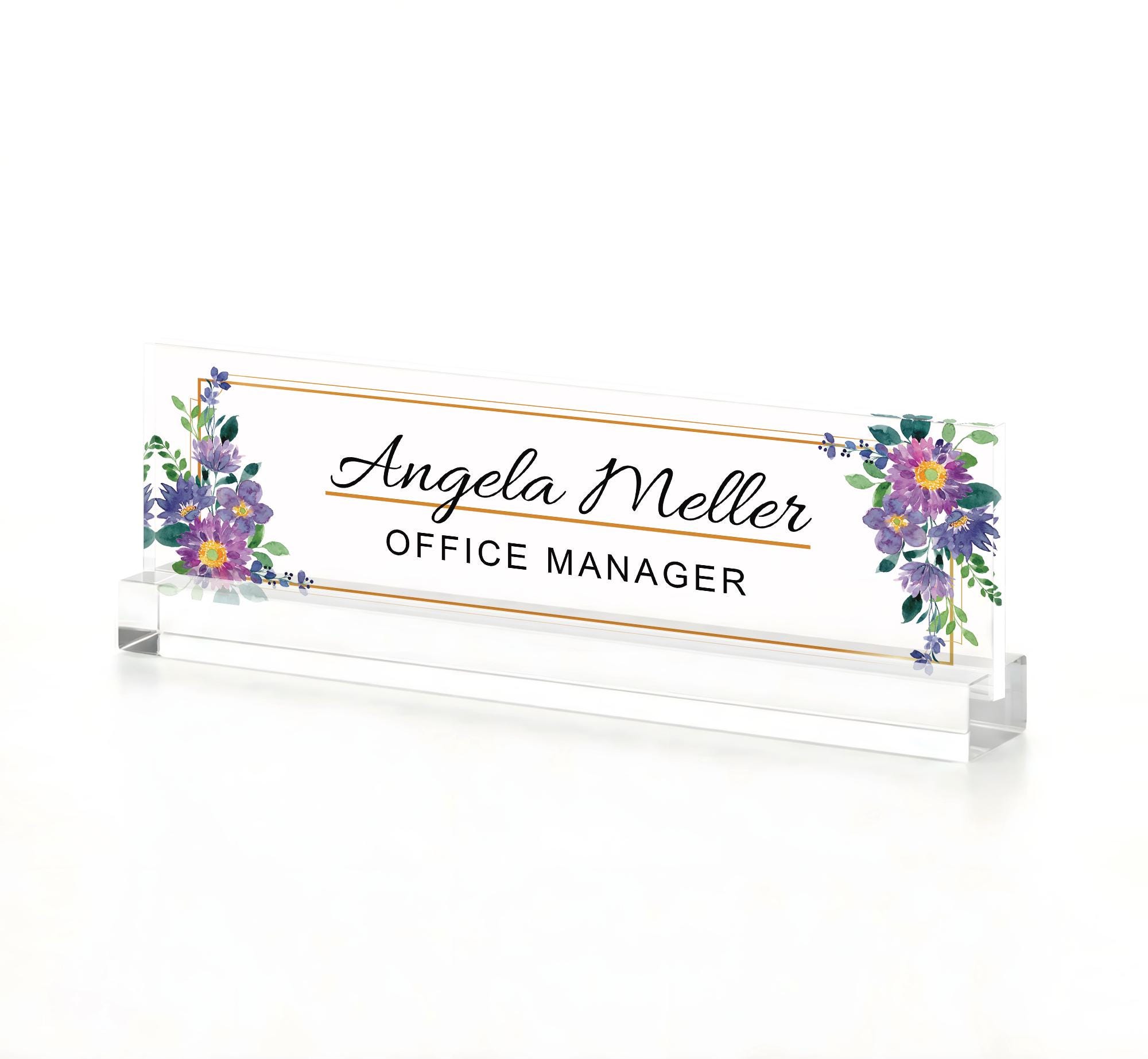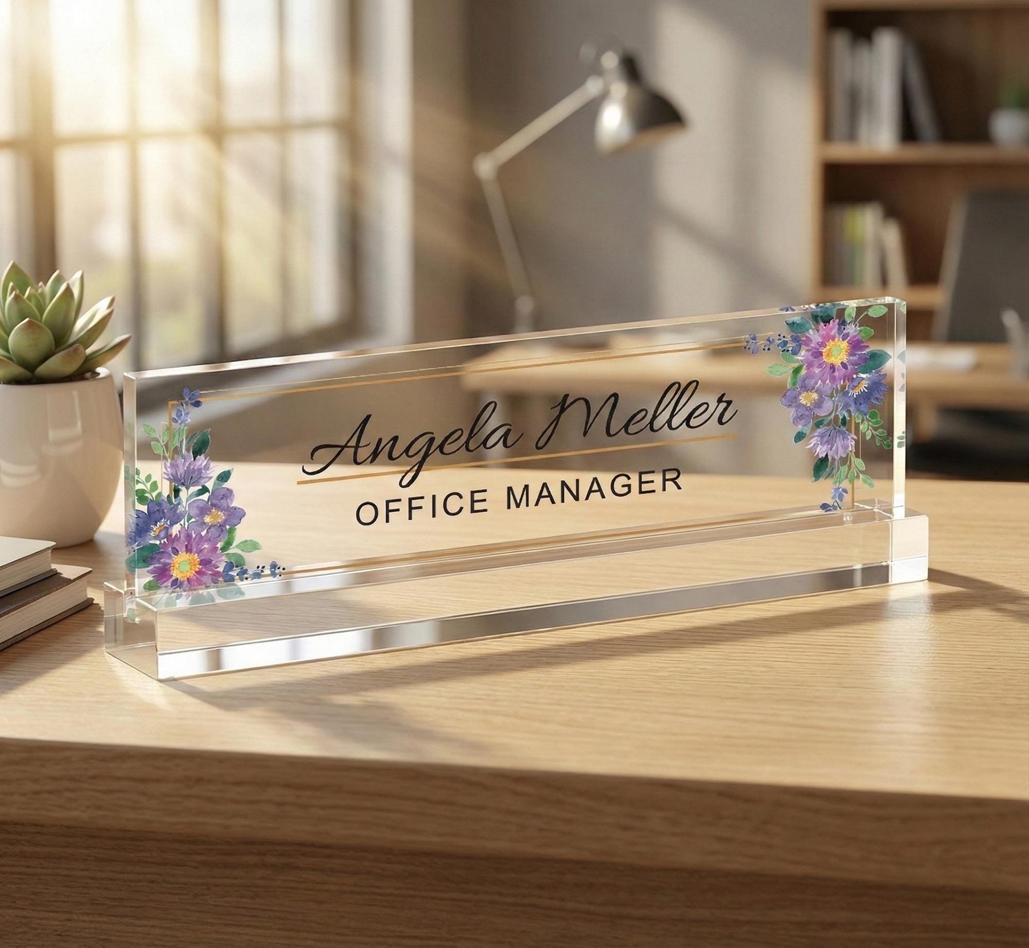 Floral Acrylic Desk Name Plate – Personalized Teacher & Office Gift,Custom Desk Sign,Decorative Home Accent and Unique Room Decor