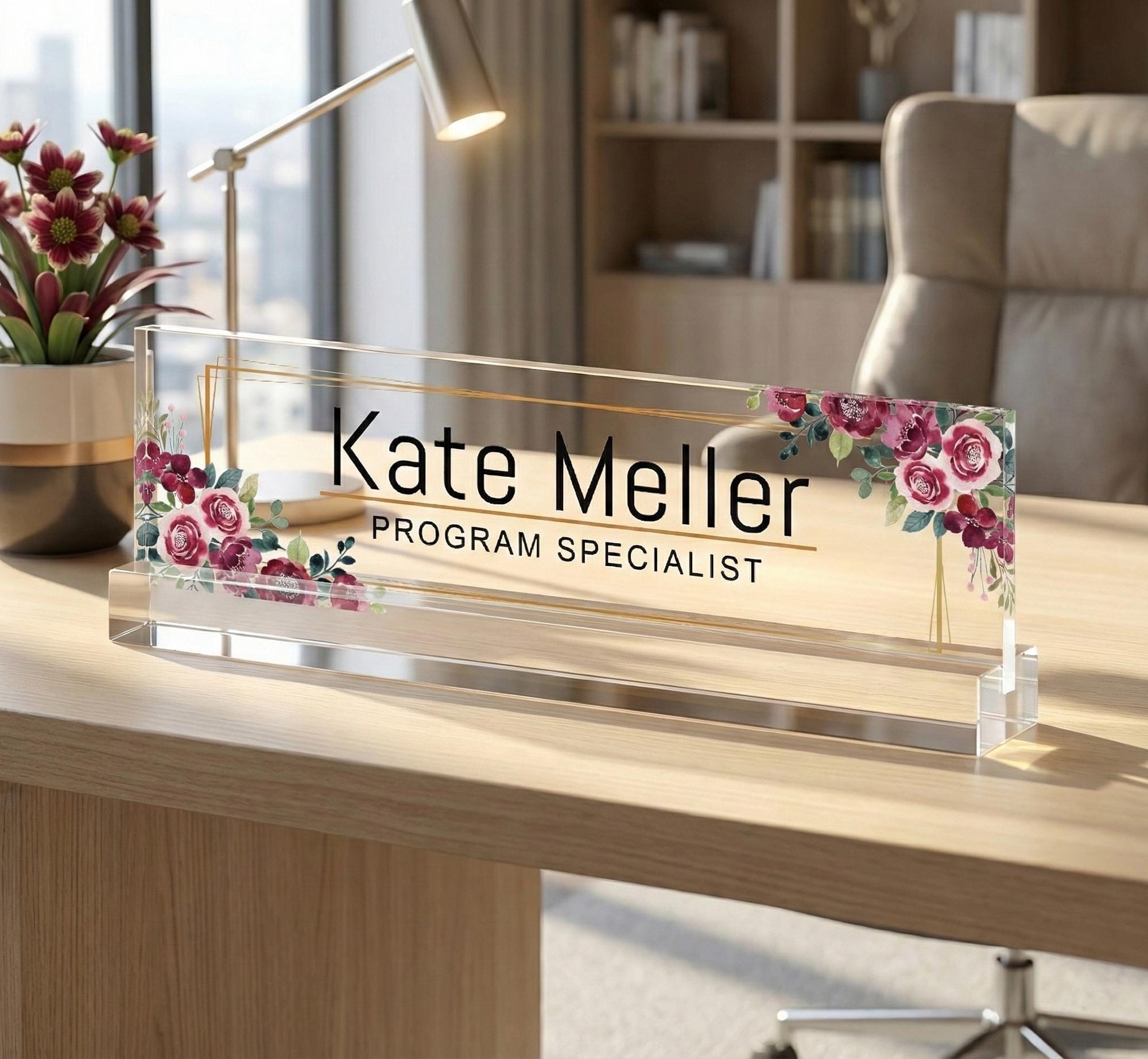 🔸PERSONALIZE YOUR ELEGANT ACRYLIC DESK PLATE - Add Your Name And