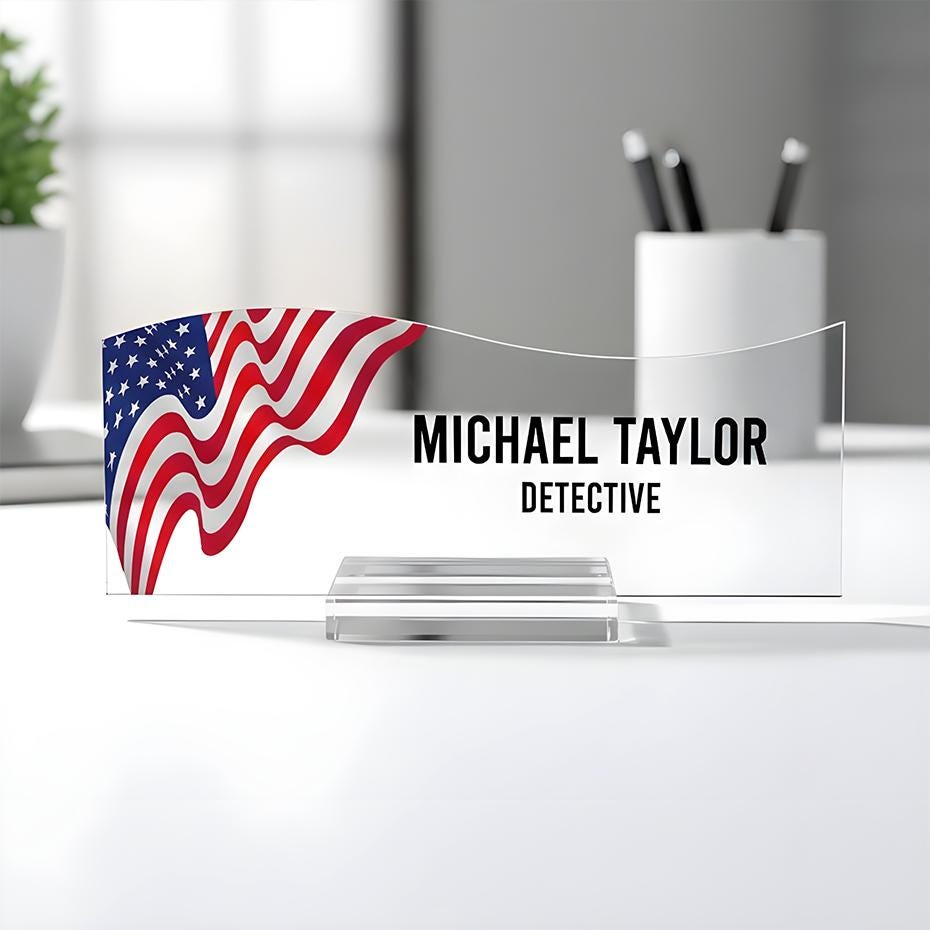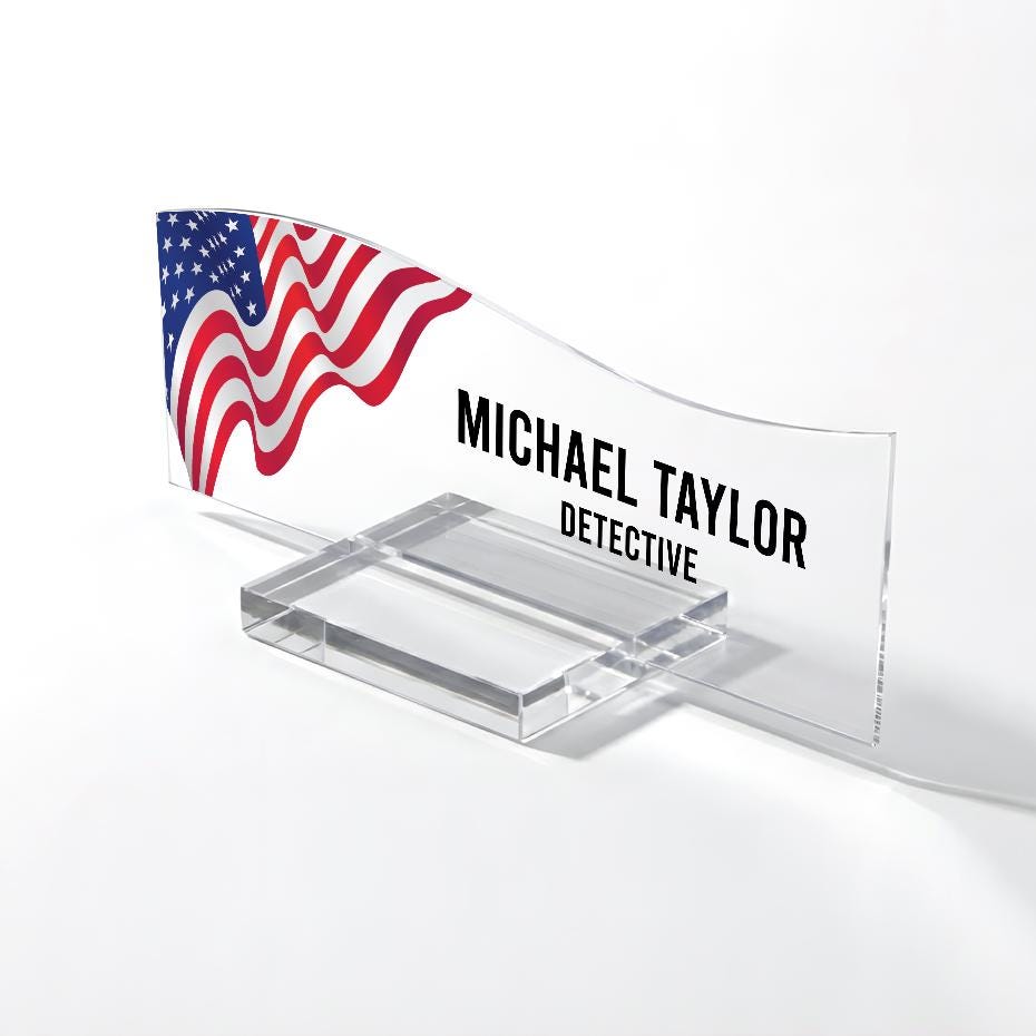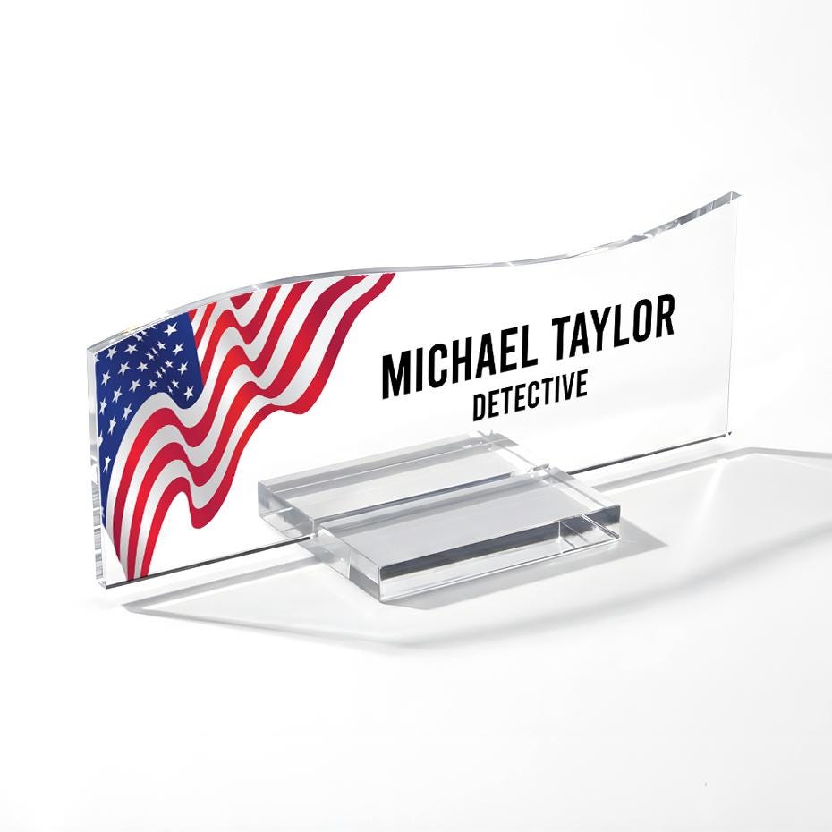 US Flag Acrylic Desk Name Plate, Personalized Office Decor