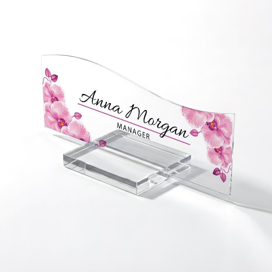 Personalized Acrylic Desk Name Plate: Solid Acrylic Base, Office Decor