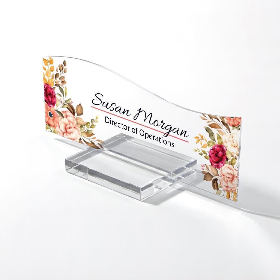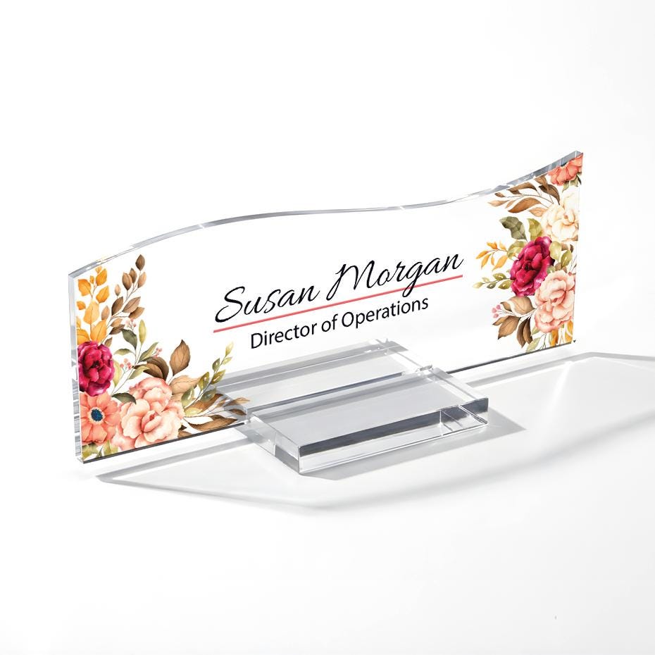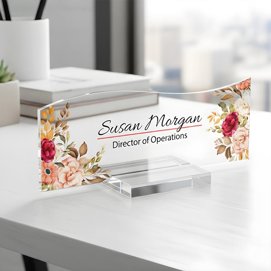 Peony Floral Acrylic Desk Name Plate: Personalized Office Decor
