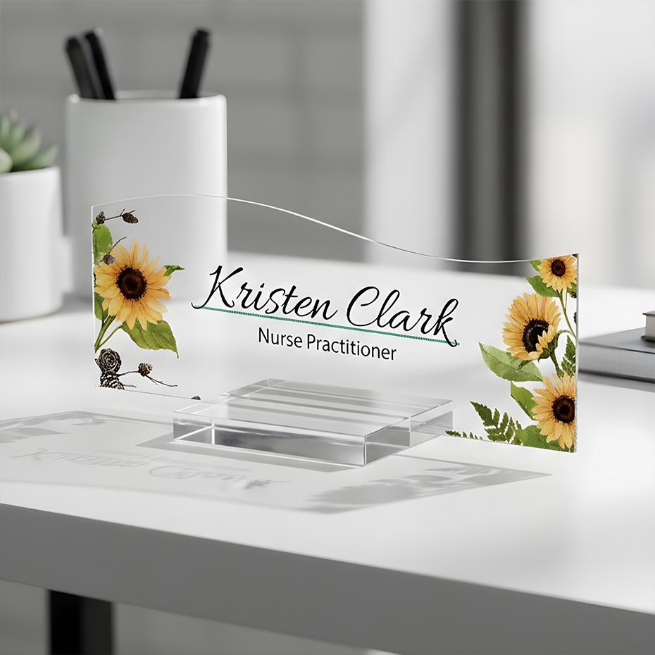 Personalized Acrylic Office Name Plate, Promotion Gift, Sunflower