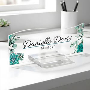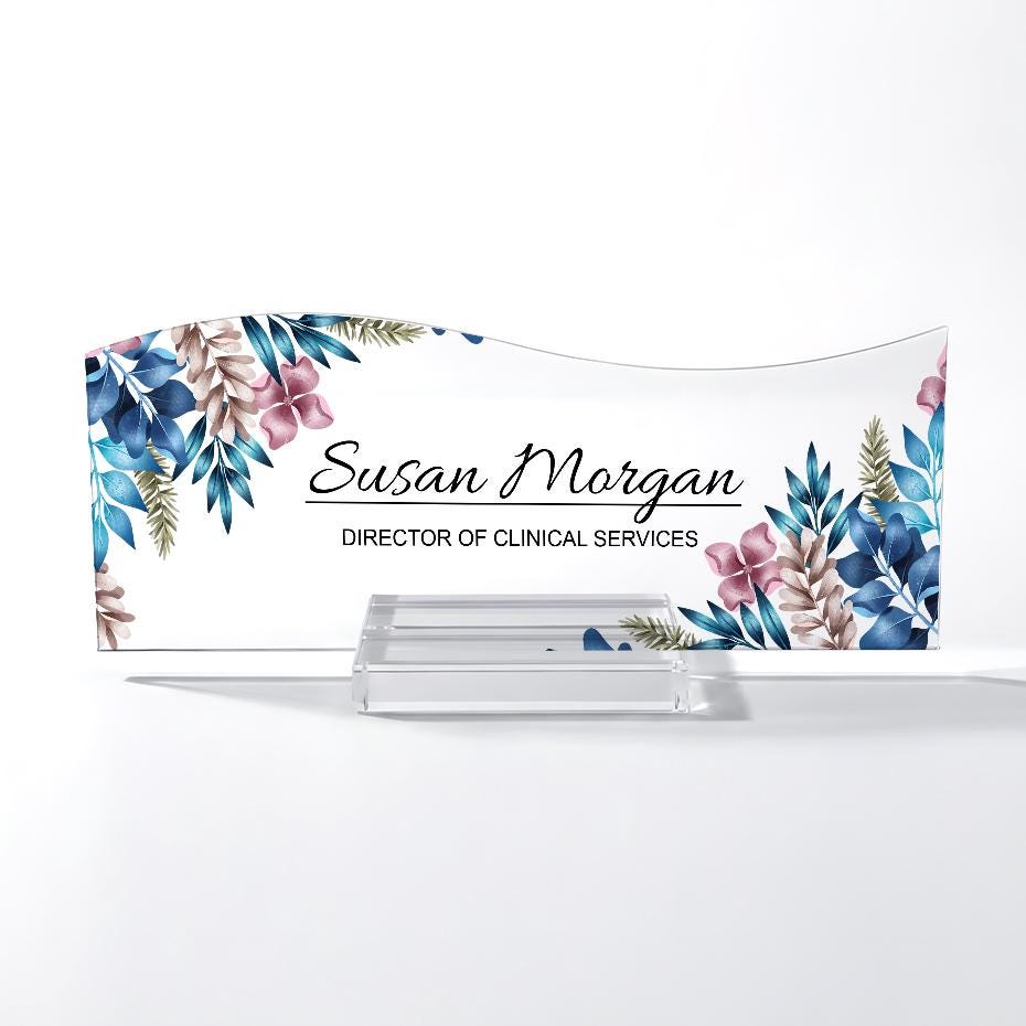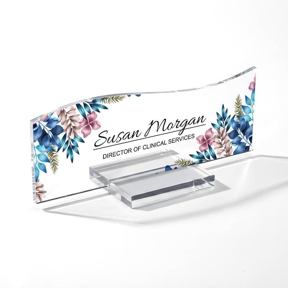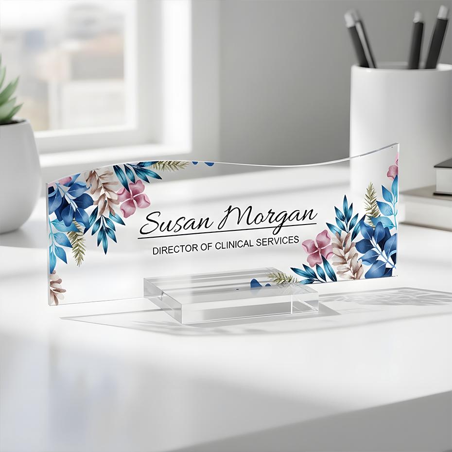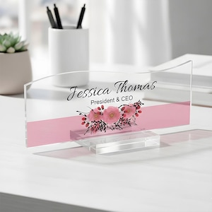 Personalized Floral Acrylic Desk Name Plate, Custom Office Sign
